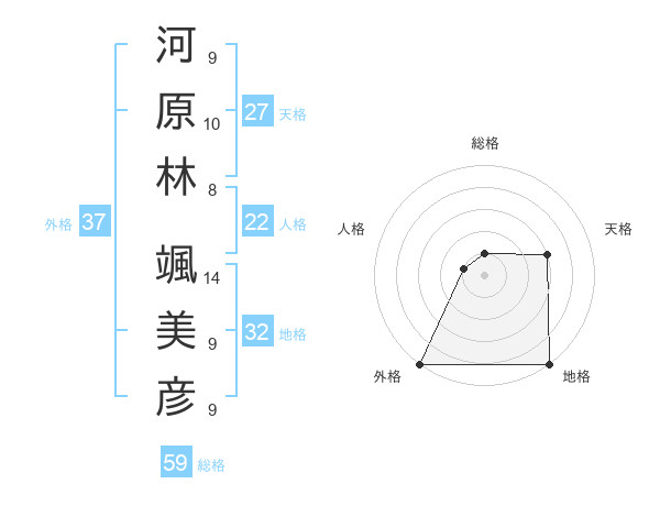 河原林 颯美彦さんを姓名の画数から五運を鑑定