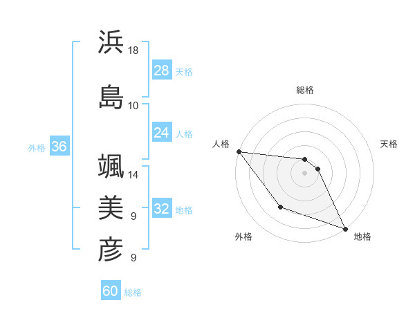 浜島 颯美彦さんの総格は60画の1点