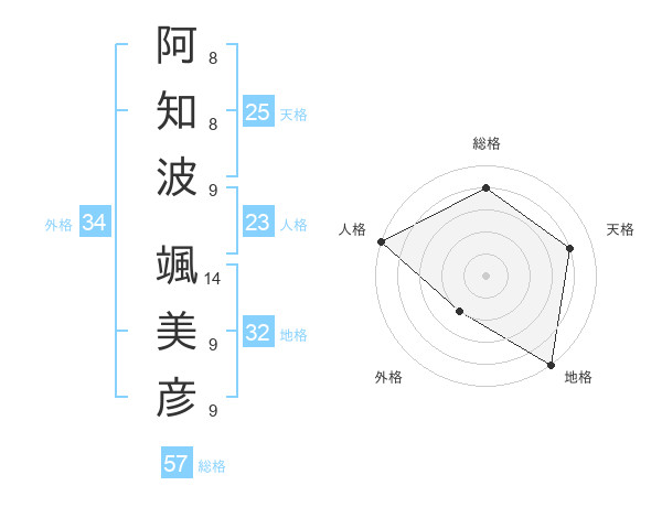阿知波 颯美彦さんを姓名の画数から五運を鑑定