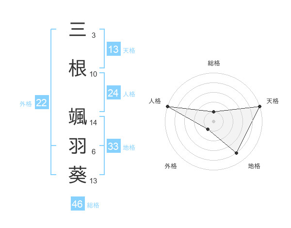 三根 颯羽葵さんを姓名の画数から五運を鑑定