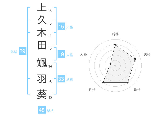 上久木田 颯羽葵さんを姓名の画数から五運を鑑定