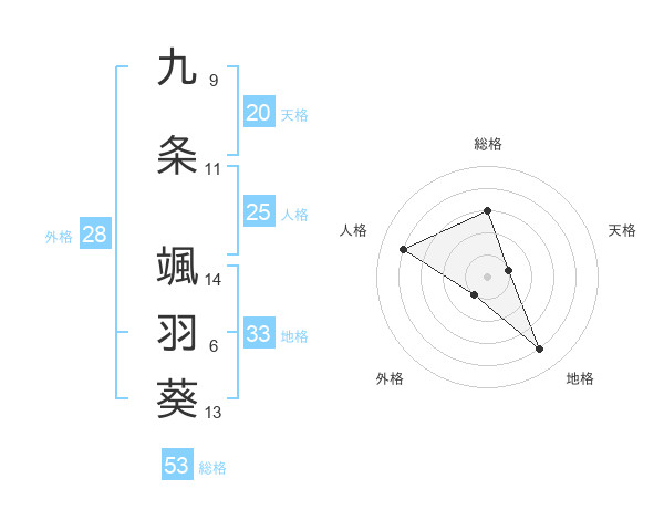 九条 颯羽葵さんを姓名の画数から五運を鑑定
