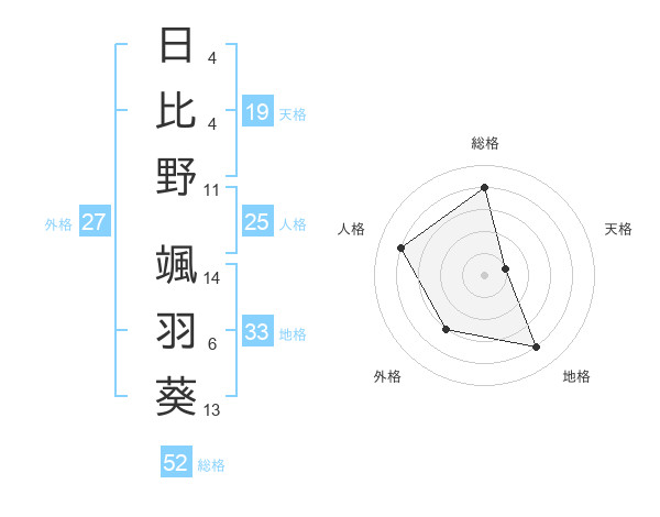 日比野 颯羽葵さんを姓名の画数から五運を鑑定