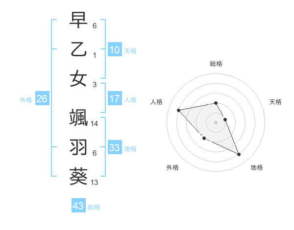 早乙女 颯羽葵さんを姓名の画数から五運を鑑定