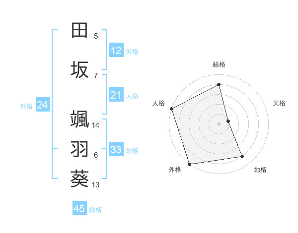 田坂 颯羽葵さんを姓名の画数から五運を鑑定