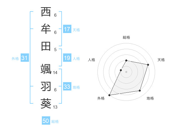 西牟田 颯羽葵さんを姓名の画数から五運を鑑定