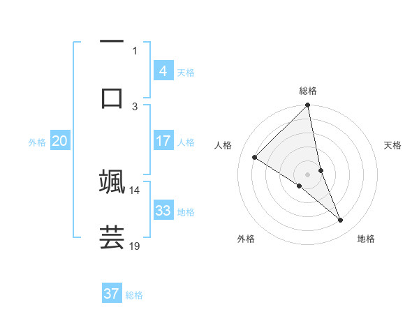 一口 颯芸さんを姓名の画数から五運を鑑定
