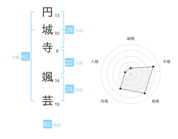 円城寺 颯芸さんの総格は62画の1点!