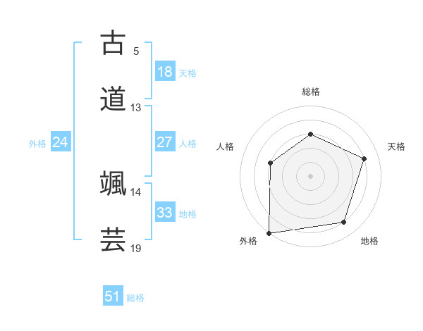 古道 颯芸さんを姓名の画数から五運を鑑定