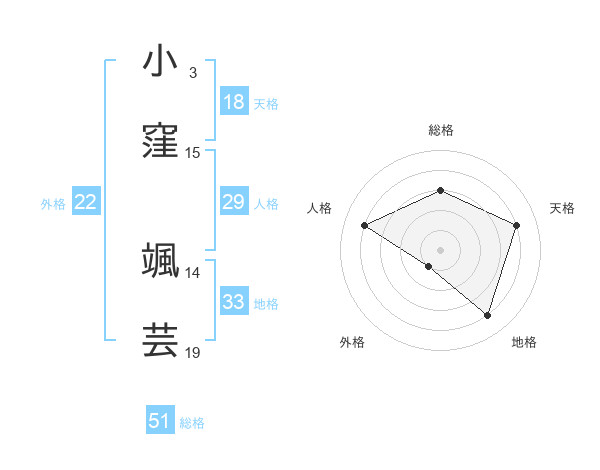 小窪 颯芸さんの総格は51画の3点!