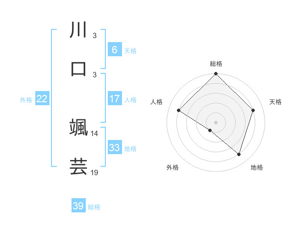 川口 颯芸さんの総格は39画の5点!
