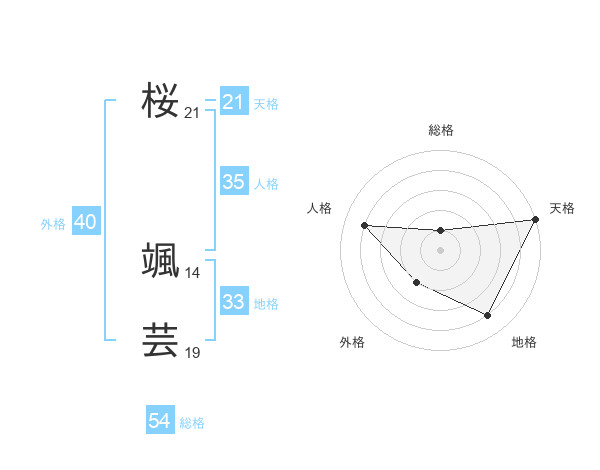 桜 颯芸さんの天格は21画の5点!
