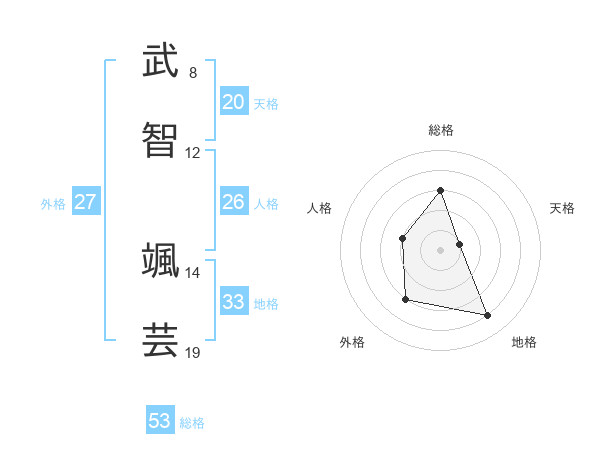 武智 颯芸さんの総格は53画の3点!