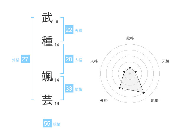 武種 颯芸さんを姓名の画数から五運を鑑定