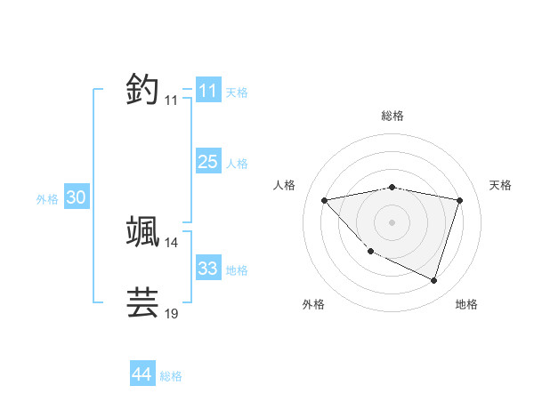 釣 颯芸さんを姓名の画数から五運を鑑定