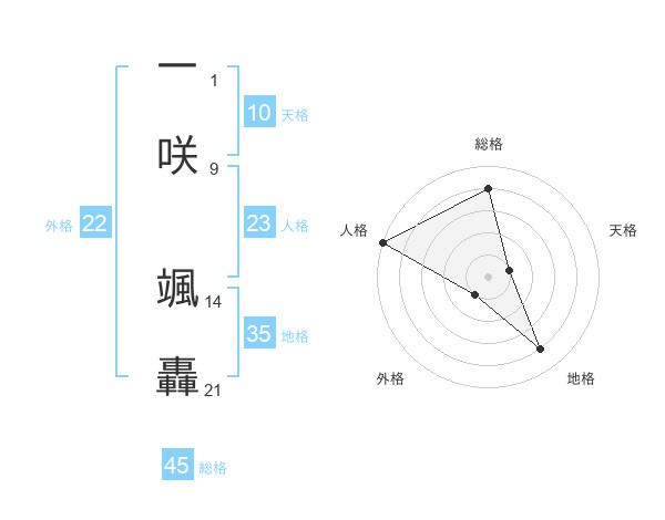 一咲 颯轟さんの総格は45画の4点!