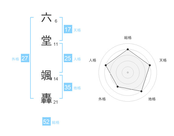 六堂 颯轟さんの総格は52画の4点!