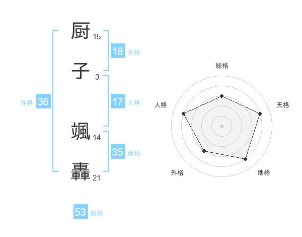厨子 颯轟さんの総格は53画の3点!