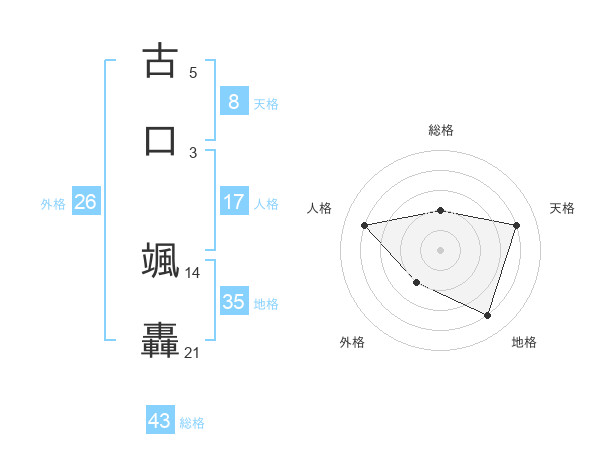 古口 颯轟さんの天格は8画の4点!