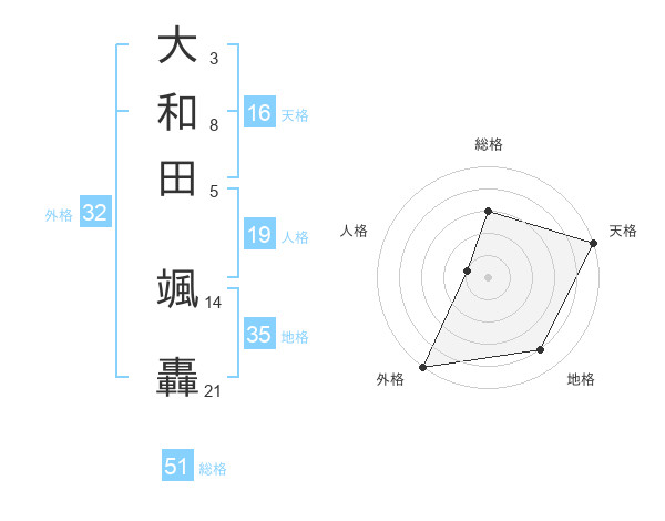 大和田 颯轟さんを姓名の画数から五運を鑑定