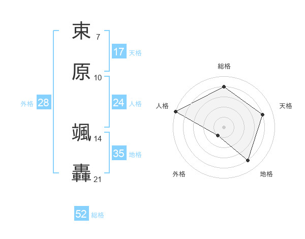 束原 颯轟さんを姓名の画数から五運を鑑定