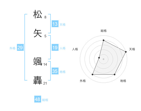 松矢 颯轟さんの天格は13画の5点!