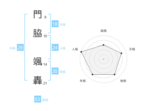 門脇 颯轟さんの総格は53画の3点!