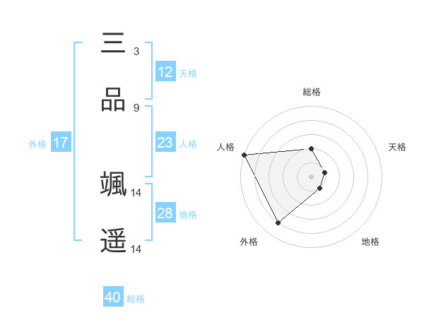 三品 颯遥さんを姓名の画数から五運を鑑定