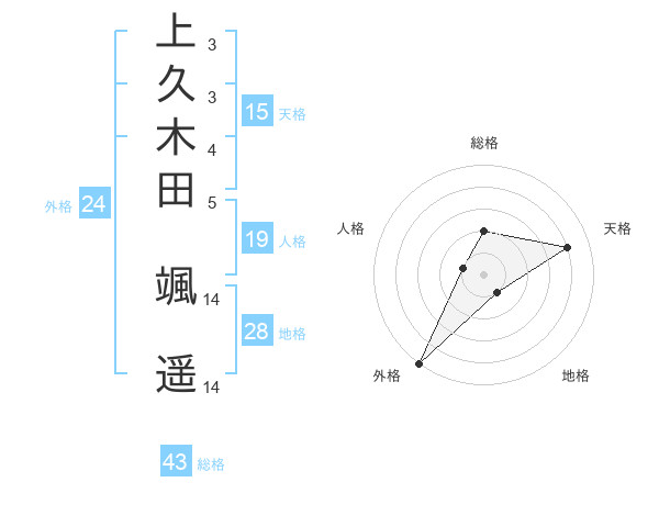 上久木田 颯遥さんを姓名の画数から五運を鑑定