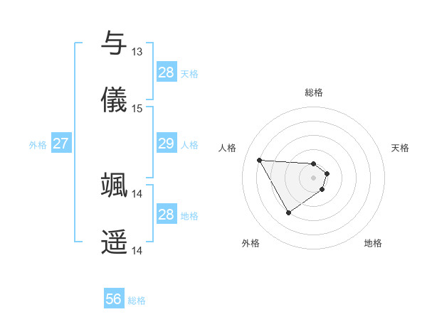 与儀 颯遥さんを姓名の画数から五運を鑑定