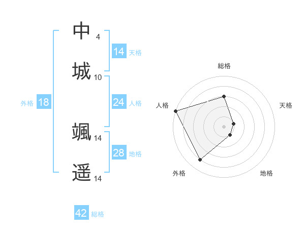 中城 颯遥さんの外格は18画の4点!