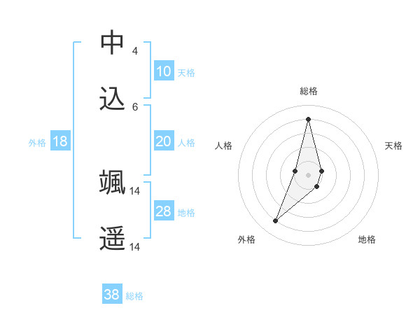中込 颯遥さんの総格は38画の4点!
