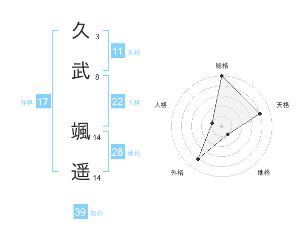 久武 颯遥さんを姓名の画数から五運を鑑定