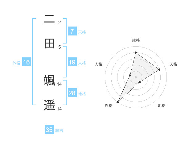二田 颯遥さんを姓名の画数から五運を鑑定