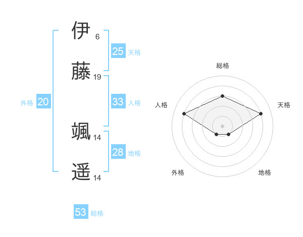 伊藤 颯遥さんの総格は53画の3点!