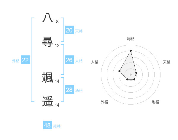 八尋 颯遥さんの総格は48画の4点!