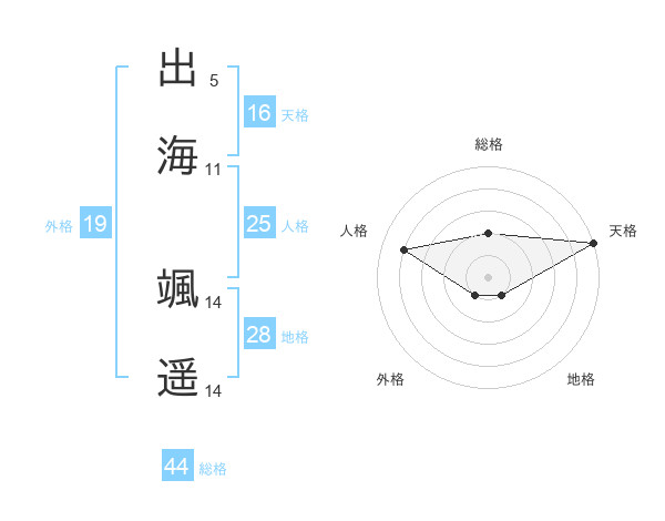 出海 颯遥さんの天格は16画の5点!