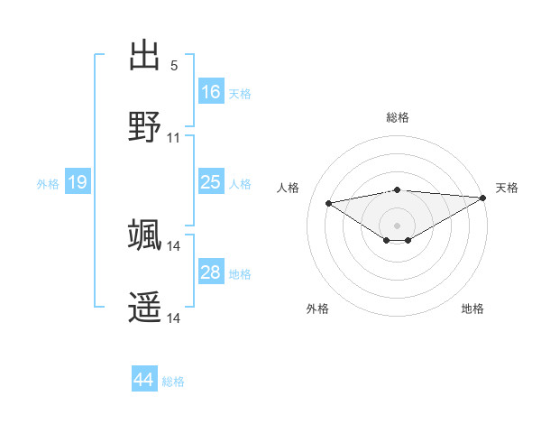 出野 颯遥さんを姓名の画数から五運を鑑定