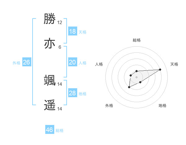 勝亦 颯遥さんを姓名の画数から五運を鑑定