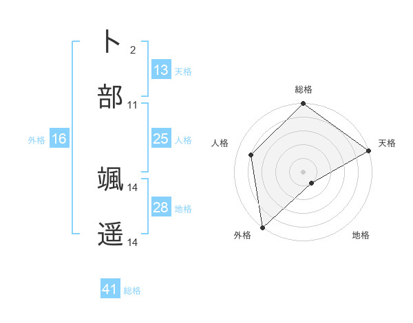 卜部 颯遥さんの外格は16画の5点!