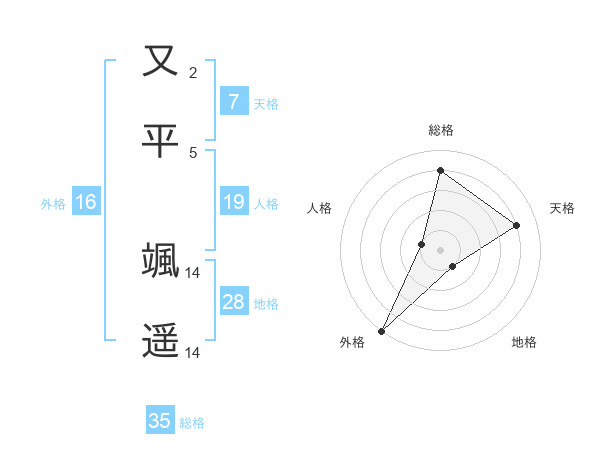 又平 颯遥さんを姓名の画数から五運を鑑定