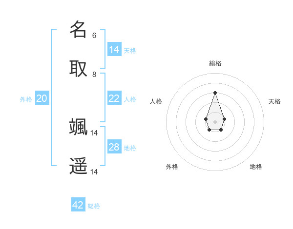 名取 颯遥さんの総格は42画の3点!