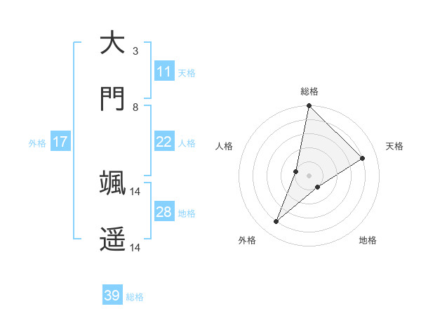 大門 颯遥さんの総格は39画の5点!