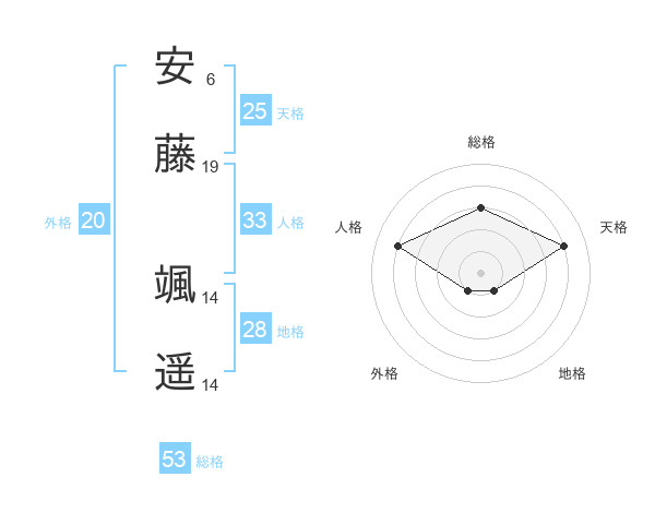 安藤 颯遥さんの総格は53画の3点!