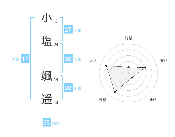小塩 颯遥さんを姓名の画数から五運を鑑定