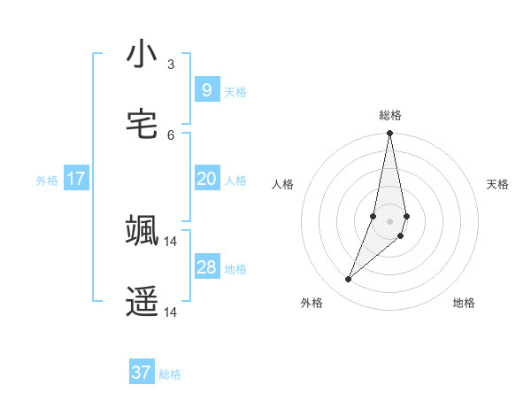 小宅 颯遥さんの総格は37画の5点!