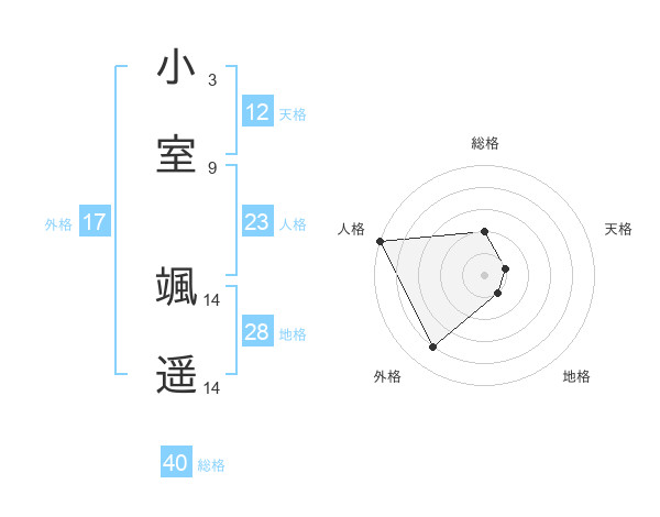 小室 颯遥さんの人格は23画の5点!