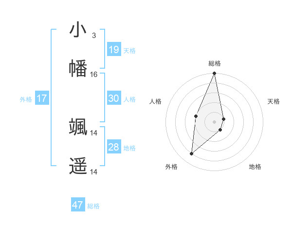 小幡 颯遥さんの総格は47画の5点!