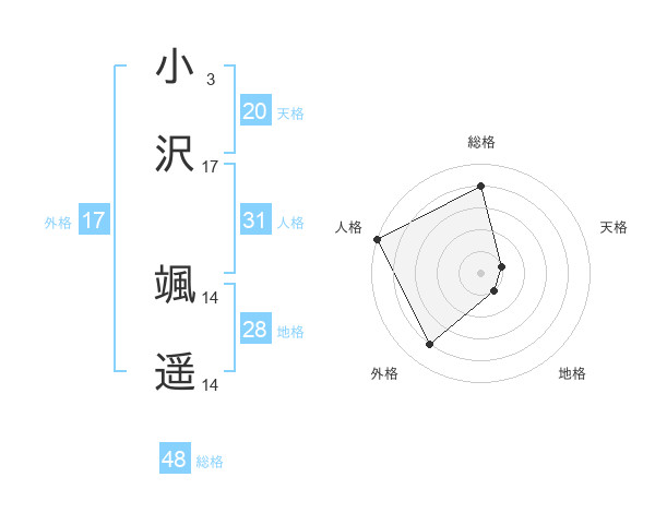 小沢 颯遥さんの外格は17画の4点!