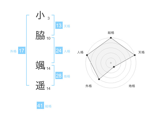小脇 颯遥さんの総格は41画の5点!